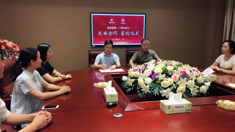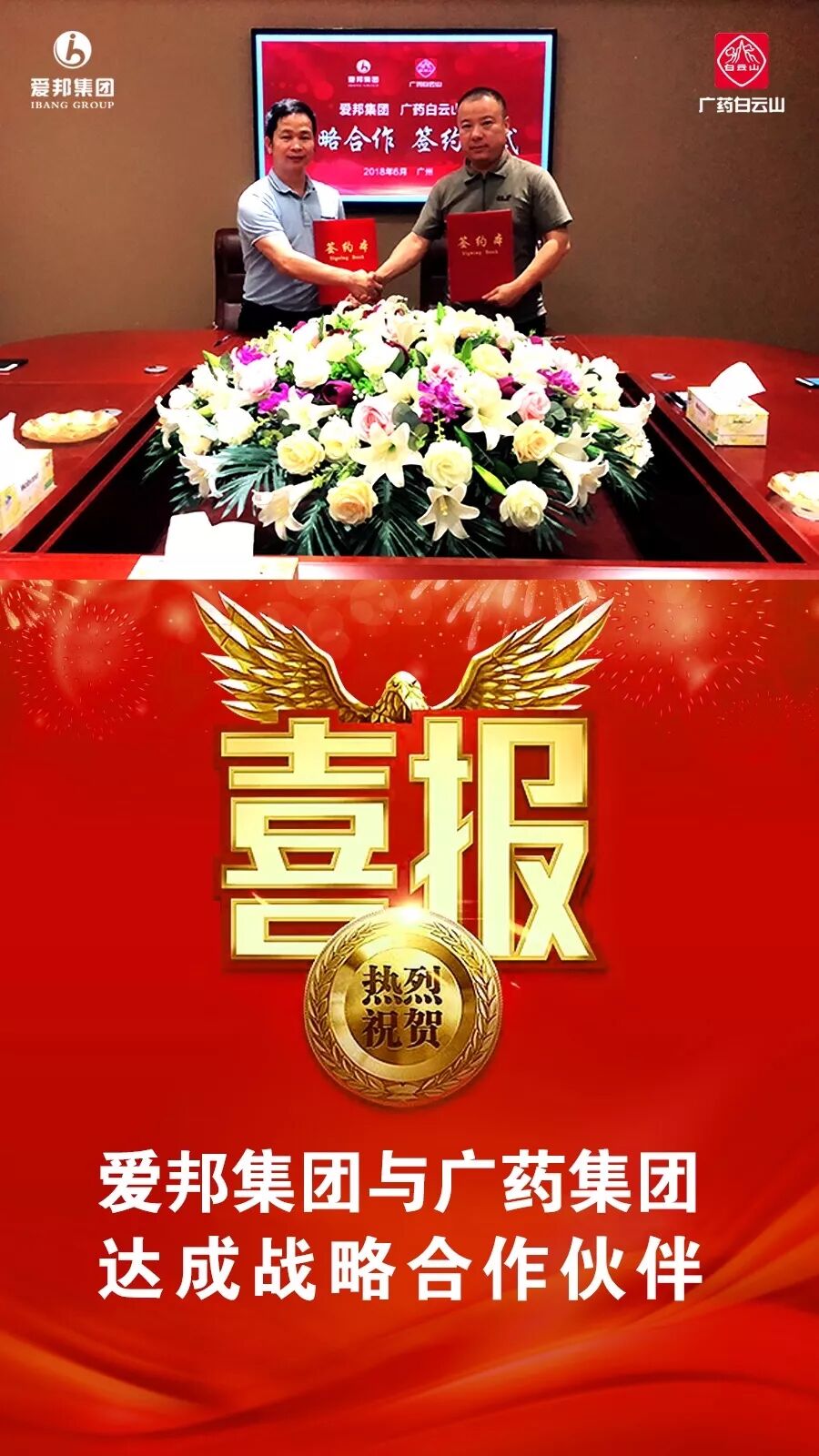 6月26日,爱邦集团与广药白云山在广州举行战略签约仪式。爱邦董事长与广药白云山杜总签订了项目合作协议及相关负责人参加了仪式。