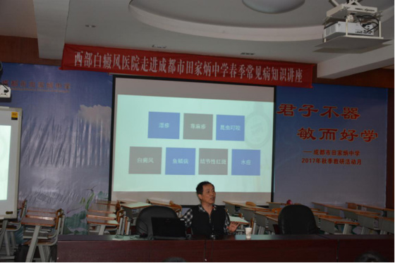 为进一步提高学生的疾病防治意识,提高对白癜风以及其他常见皮肤病的认识,更好地预防和控制疾病并科学就医,成都西部白癜风医院走进田家炳中学,通过在校园开设科普专栏、学生教师公益体检、健康知识讲座等多种合作形式,让广大在校师生树立健康意识,并缓解治病与求学压力。