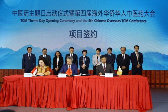 在中医药主题日启动仪式上,北京中医药大学、世界中医药学会联合会、中国中医科学院广安门医院和北京中科芯健医疗科技有限公司分别与美国、秘鲁、比利时、日本、印度尼西亚等国有关中医机构分别签署合作协议。