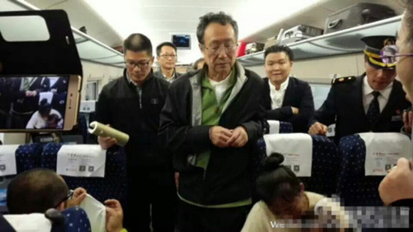 在8号车厢倒数第二排,一中年女性瘫坐在靠走廊位置的座位上,有气无力,一句话也说不出。前往遵义出差的重庆市中医院院长左国庆闻讯赶到,探查发现该患者面色、口唇苍白,四肢厥冷,大汗淋漓,脉搏弱,血压也测不出。