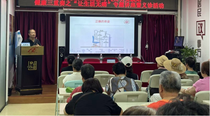在“姿势大改造”现场教学环节,戈晓东医生亲自示范正确的坐、卧、站姿,并耐心指导居民们如何调整日常姿势,掌握正确的运动技巧。居民们积极参与,纷纷模仿学习,现场气氛热烈。通过这一环节,大家深刻认识到正确姿势对预防疼痛的重要性,并表示将在今后的生活中加以注意。