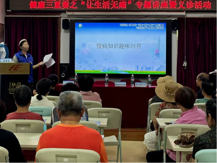 为了检验居民们对慢病知识的了解程度,活动设置了慢病知识趣味问答环节。主持人提出一个个与慢病相关的问题,居民们踊跃举手抢答。现场气氛紧张而活跃,大家在欢声笑语中巩固了所学的慢病知识,进一步增强了健康意识。