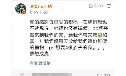 最近娱乐圈又有了一桩喜事,6月28日晚,张晋通过社交网站发布了一个视频,宣布他的老婆蔡少芬怀上了第三胎!视频一开始,张晋说了一些无聊的话,直到他问蔡少芬肚子里是不